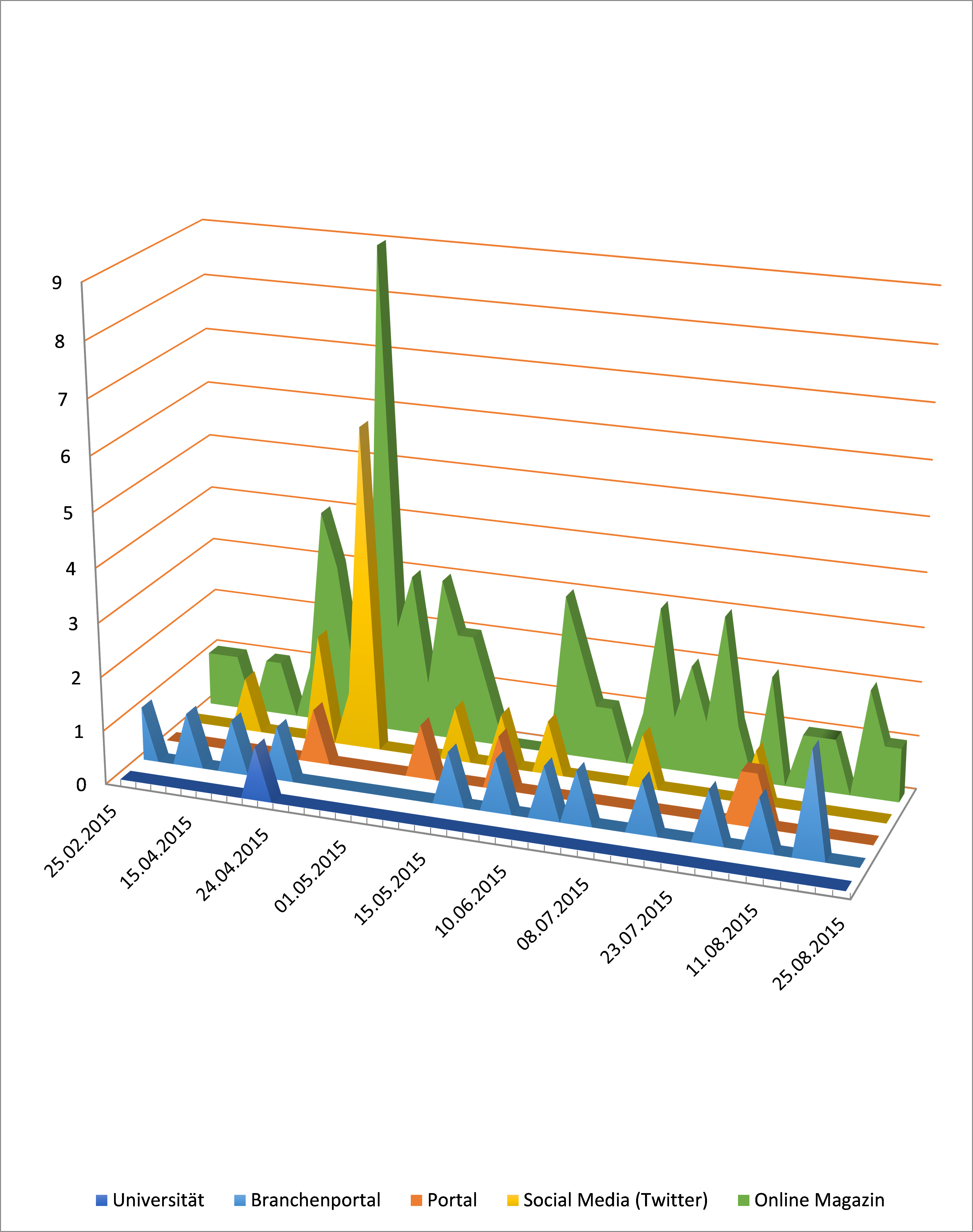 Das Onlinemonitoring gibt dem Marketing zudem eine Übersicht über die Resonanz der Onlinemedien auf PR-Aktivitäten. „Es zeigt, welche Medien versendete Pressemitteilungen und Fachartikel online publiziert haben und wie effektiv sie sich auf Social-Media-Plattformen und Branchenportalen weiterverbreitet haben“, erklärt Fischer. Es lässt sich sofort erkennen, welche Pressemitteilungen gut und welche schlecht gelaufen sind. „Das Marketing kann das Themenmanagement seiner Public Relations optimieren, um die Resonanz zu steigern.“